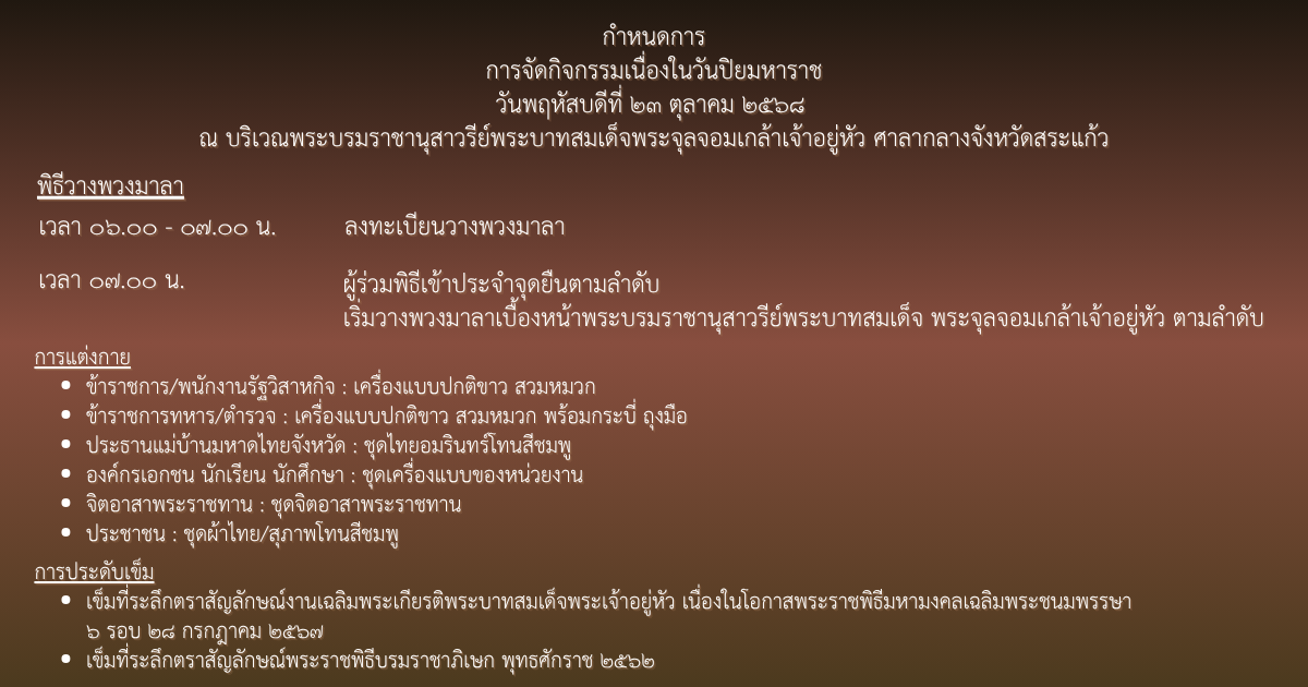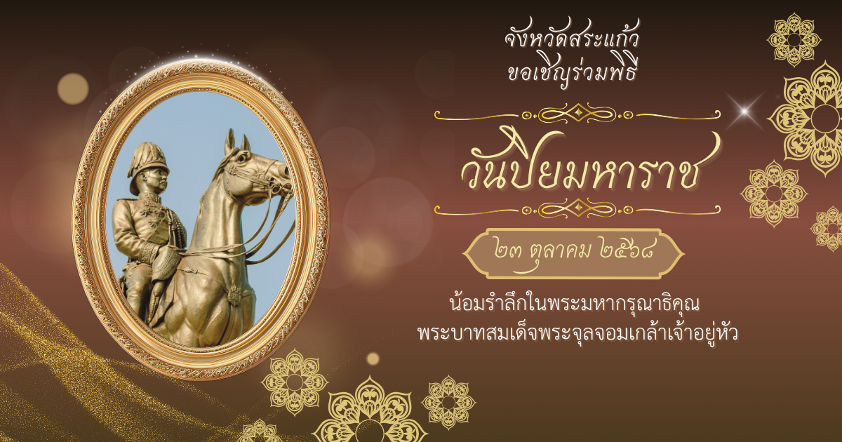 เทศบาลเมืองสระแก้ว ขอเชิญชวนร่วมพิธี "วันปิยมหาราช" 23 ตุลาคม 2568