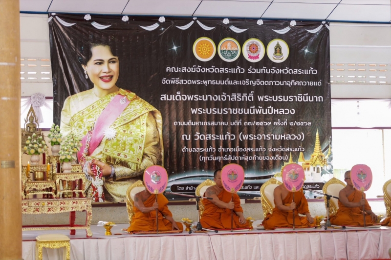 คณะสงฆ์จังหวัดสระแก้ว ร่วมกับจังหวัดสระแก้ว จัดพิธีสวดพระพุทธมนต์และเจริญจิตตภาวนาอุทิศถวายแด่สมเด็จพระนางเจ้าสิริกิติ์ พระบรมราชินีนาถ พระบรมราชชนนีพันปีหลวง