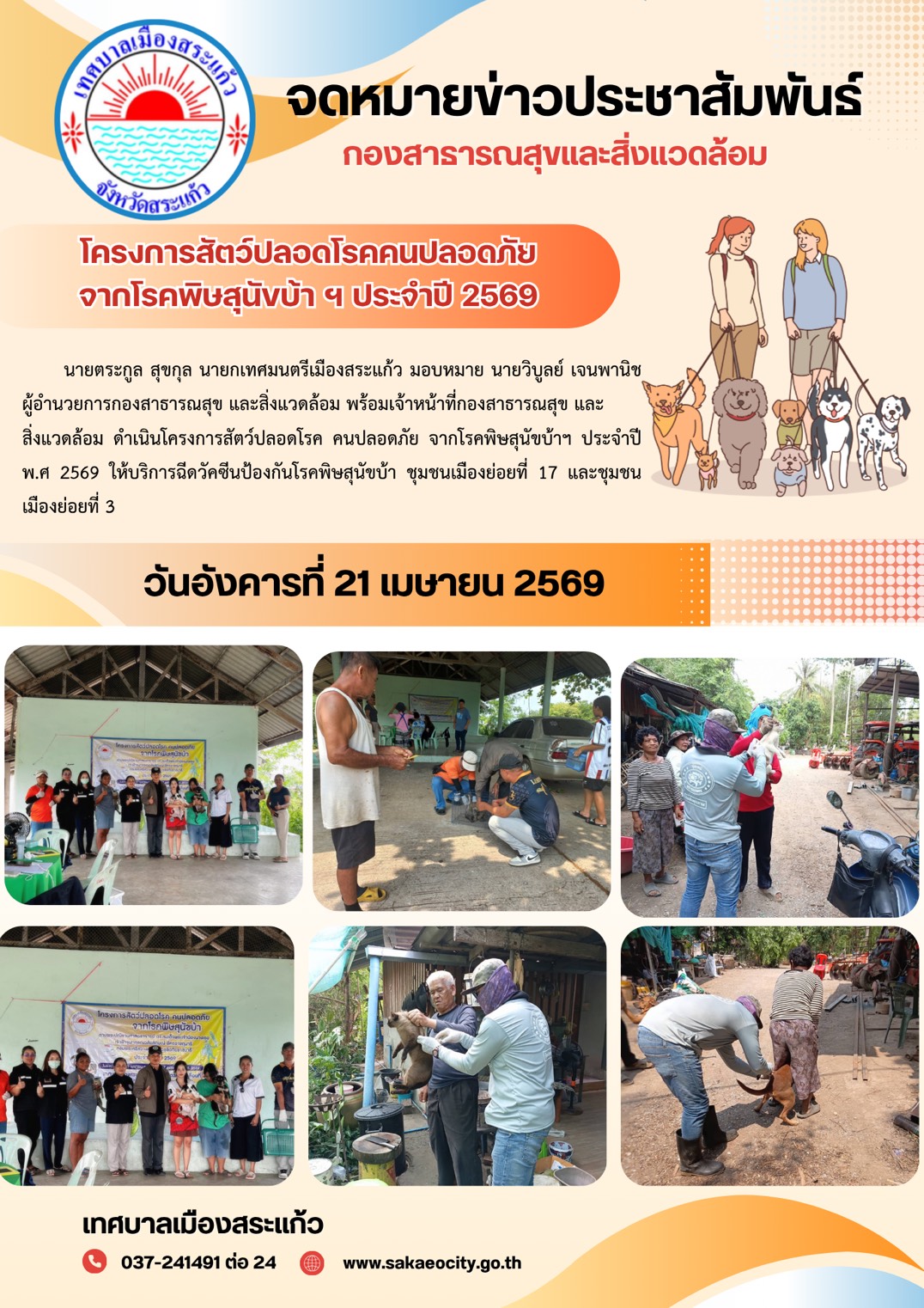 เทศบาลเมืองสระแก้ว ดำเนินโครงการสัตว์ปลอดโรค คนปลอดภัย จากโรคพิษสุนัขบ้าฯ ประจำปี พ.ศ 2569