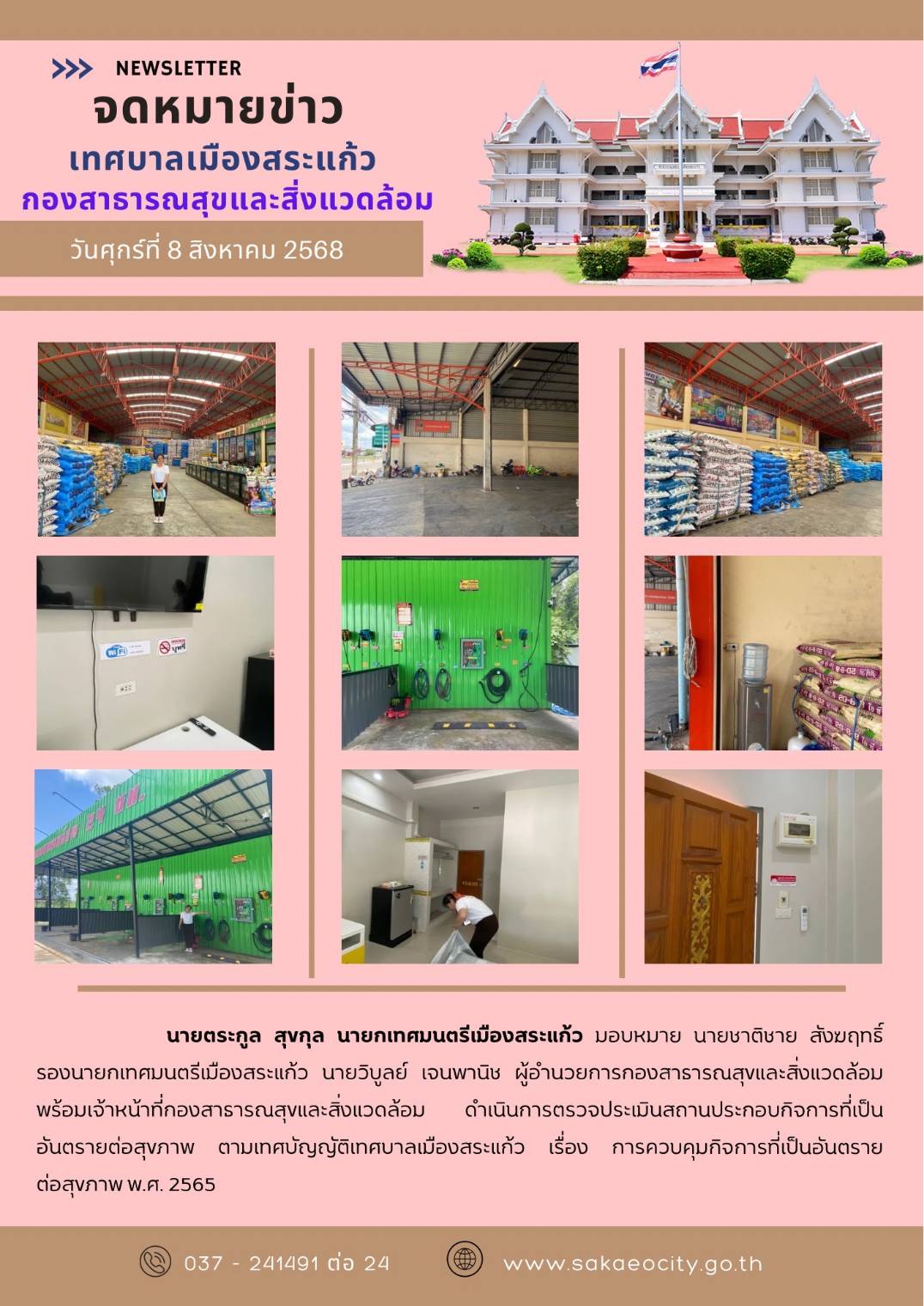 เทศบาลเมืองสระแก้ว ดำเนินการตรวจประเมินสถานประกอบก...