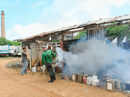 เทศบาลเมืองสระแก้ว ดำเนินการพ่นสารเคมีหมอกควันกำจั...