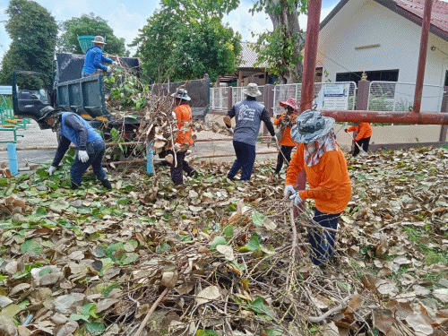 เทศบาลเมืองสระแก้ว ดำเนินการเก็บเศษกิ่งไม้และใบไม้