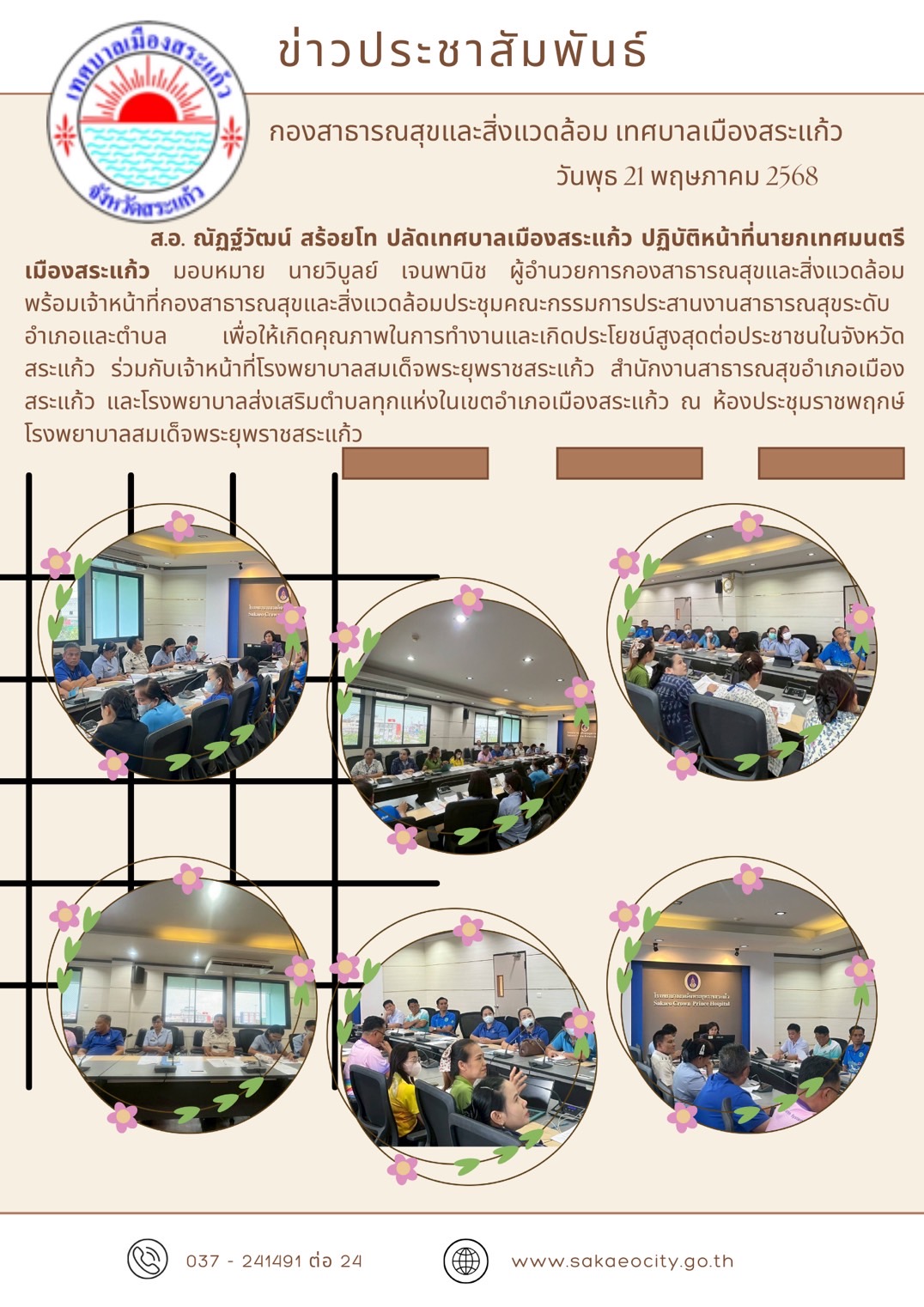 เทศบาลเมืองสระแก้ว เข้าประชุมคณะกรรมการประสานงานสา...