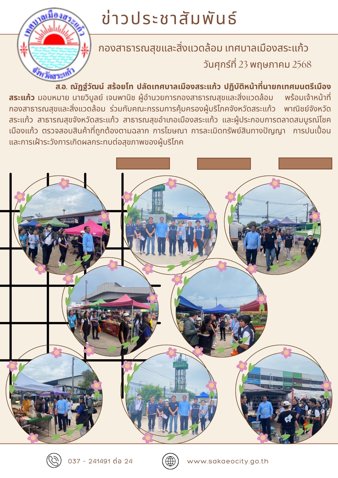กองสาธารณสุขและสิ่งแวดล้อม : เทศบาลเมืองสระแก้ว อำเภอเมืองสระแก้ว จังหวัดสระแก้ว : www.sakaeocity.go.th/health