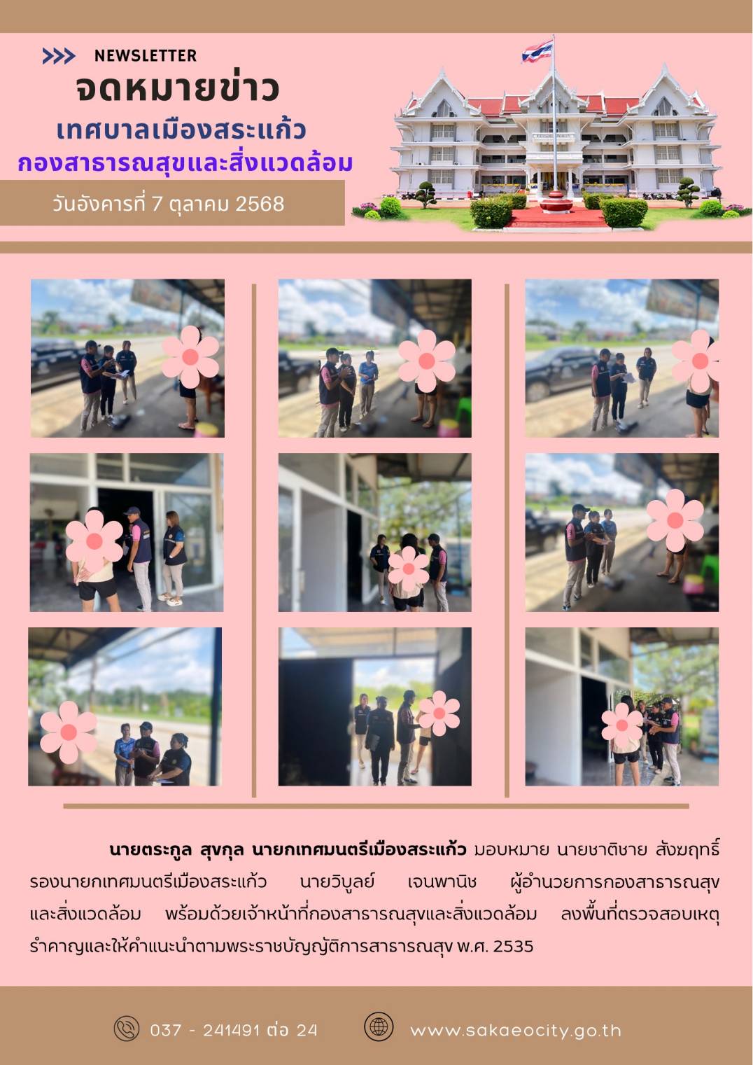 เทศบาลเมืองสระแก้ว ลงพื้นที่ตรวจสอบเหตุรำคาญ