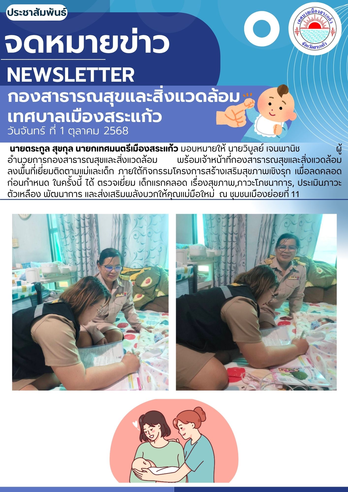 เทศบาลเมืองสระแก้ว ลงพื้นที่เยี่ยมสุขภาพแม่หลังคลอ...