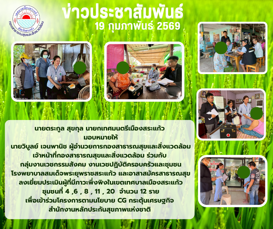 เทศบาลเมืองสระแก้ว ลงเยี่ยมประเมินผู้ที่มีภาวะพึ่งพิงในเขตเทศบาลเมืองสระแก้ว