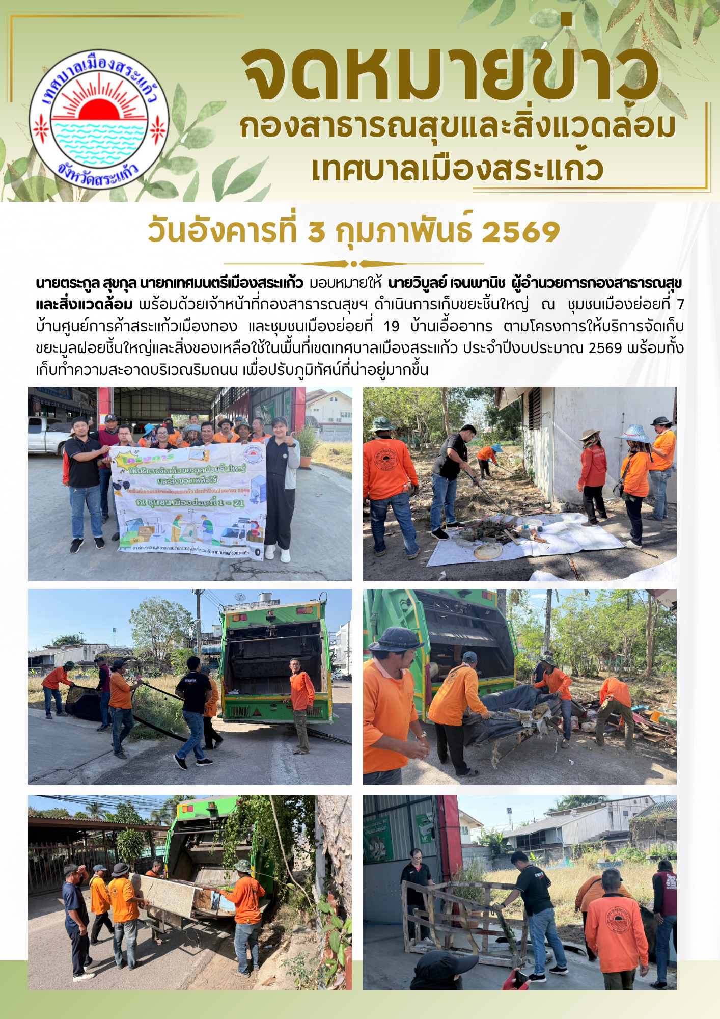 เทศบาลเมืองสระแก้ว ดำเนินการเก็บขยะชิ้นใหญ่