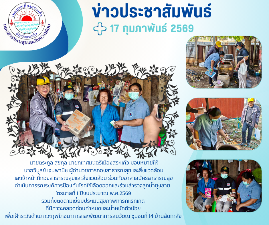 กองสาธารณสุขและสิ่งแวดล้อม : เทศบาลเมืองสระแก้ว อำเภอเมืองสระแก้ว จังหวัดสระแก้ว : www.sakaeocity.go.th/health