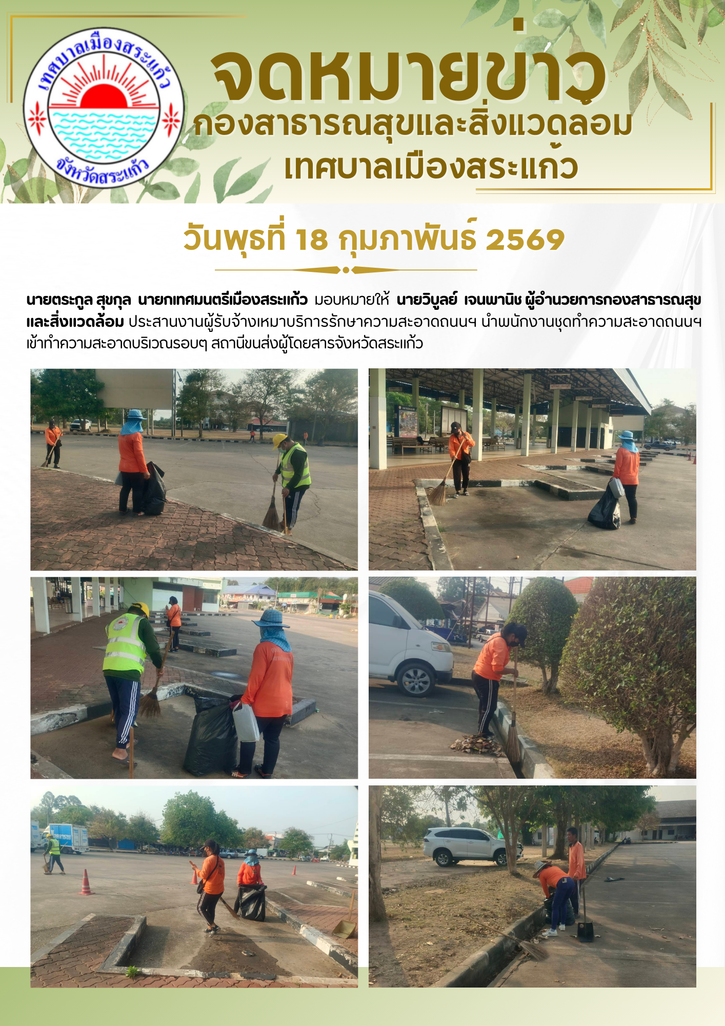 เทศบาลเมืองสระแก้ว ดำเนินการทำความสะอาดบริเวณศาลหล...