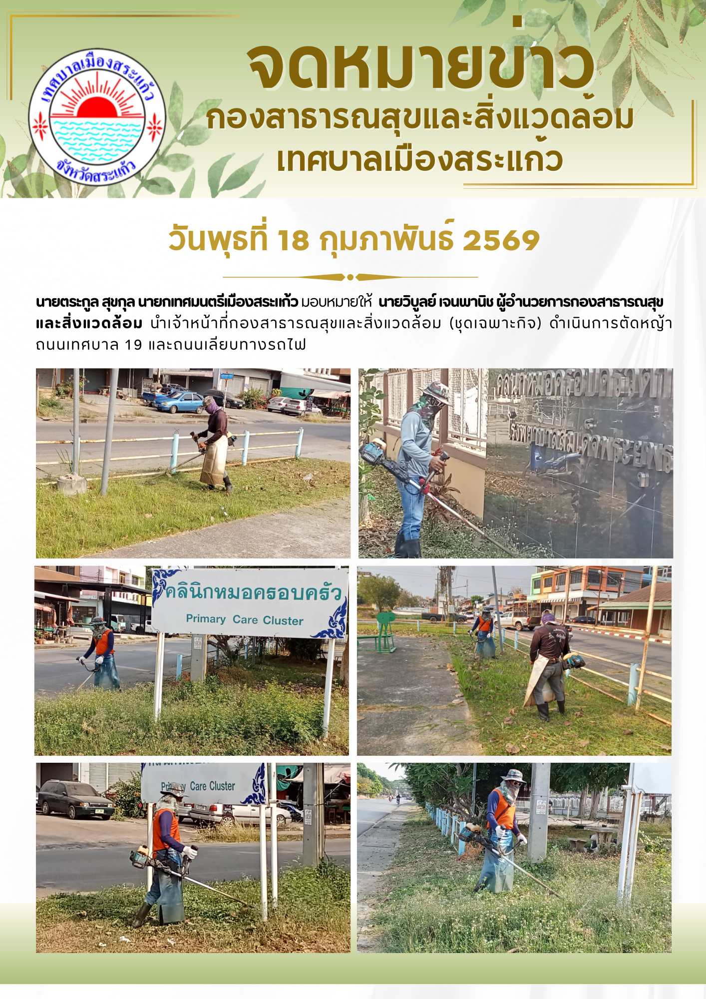 เทศบาลเมืองสระแก้ว ดำเนินการตัดหญ้า