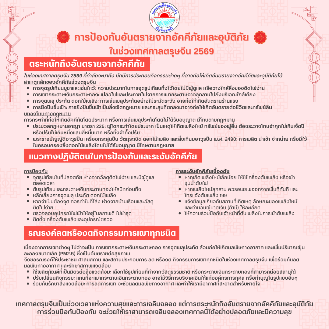 เทศบาลเมืองสระแก้ว ขอประชาสัมพันธ์การป้องกันอันตรายจากอัคคีภัยและอุบัติภัย ในช่วงเทศกาลตรุษจีน ๒๕๖๙